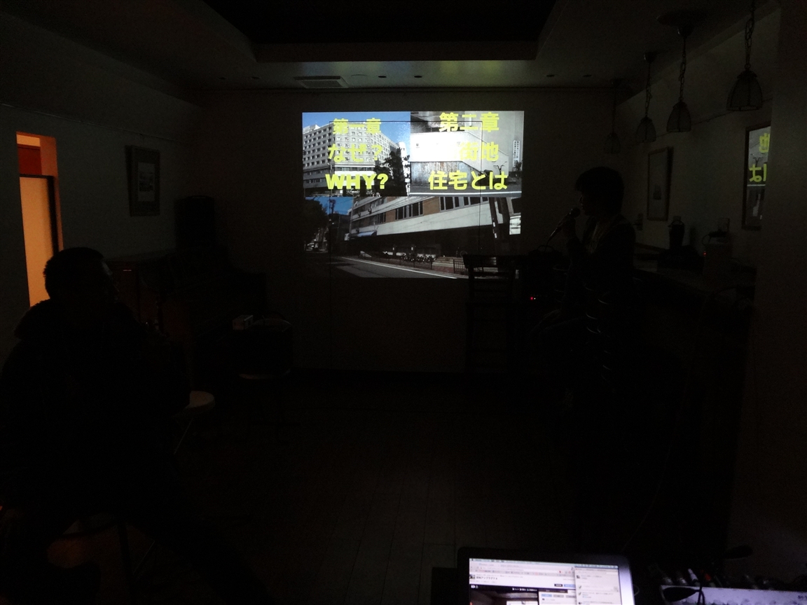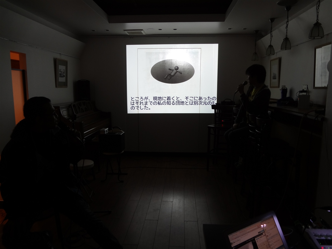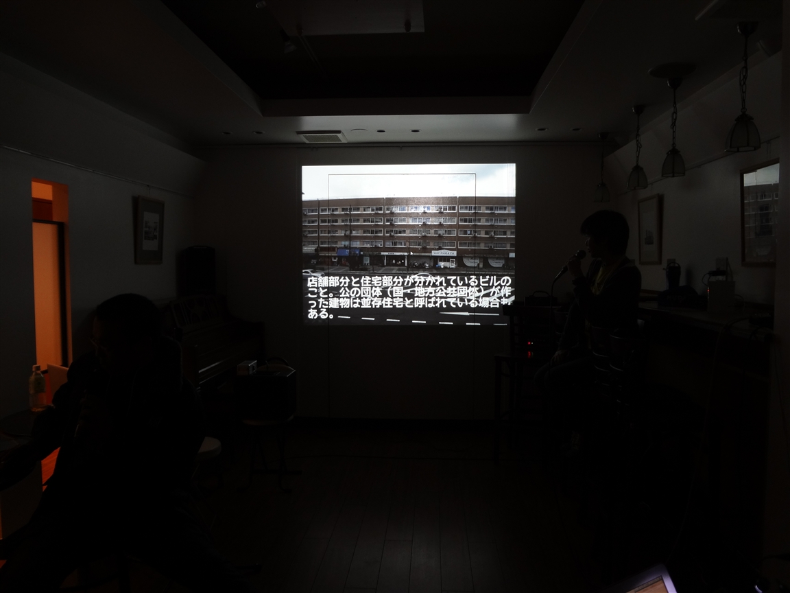 ↑出演者勢揃い。 マイクを手に話しているのはmineSOTAさん。 今回初の試みとしての座談会でしたが、twitterでの投稿と合わせて、それぞれの「団地の魅力」を語りました。 |