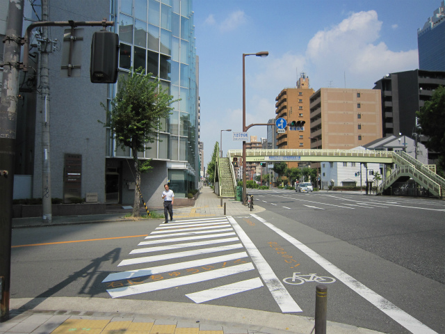 地下道入り口が見えてもまっすぐ進み、信号を渡ります。