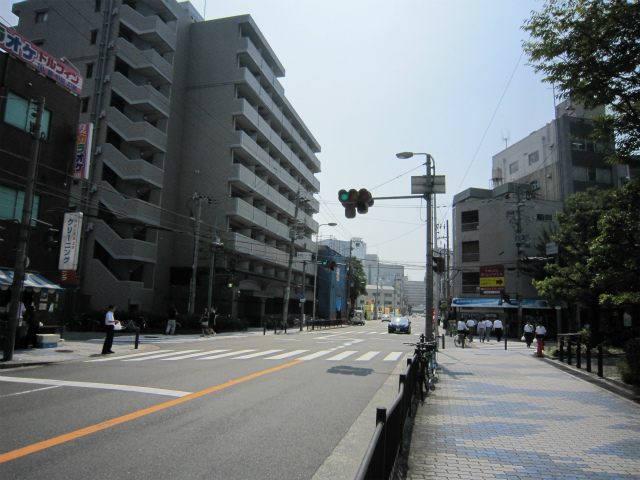 降りたらまっすぐ行くと『芝田1』交差点の信号があるので渡ったところを左に曲がります。
