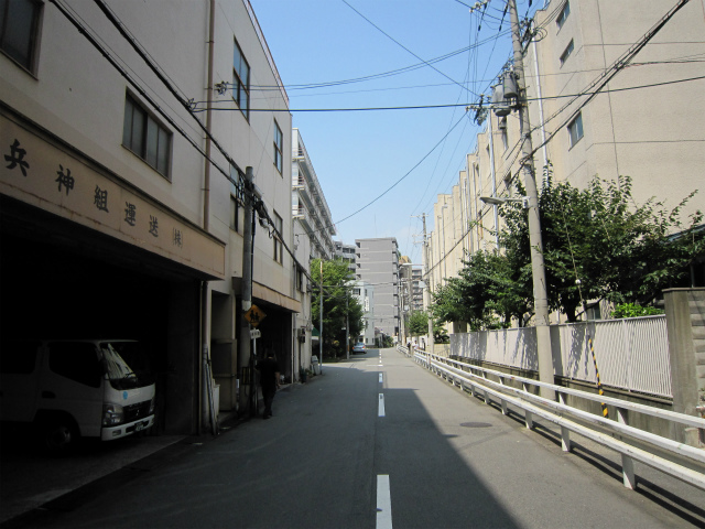 なにわ筋沿いに、踏切を渡ってまっすぐいきます。
