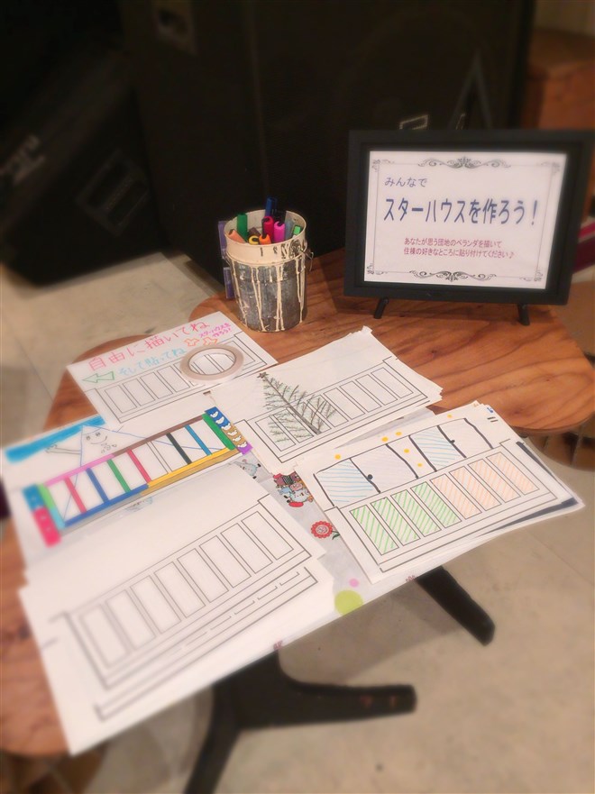 ↑ お越しいただいた皆様には、ベランダの絵を好きなように描いていただきまして...